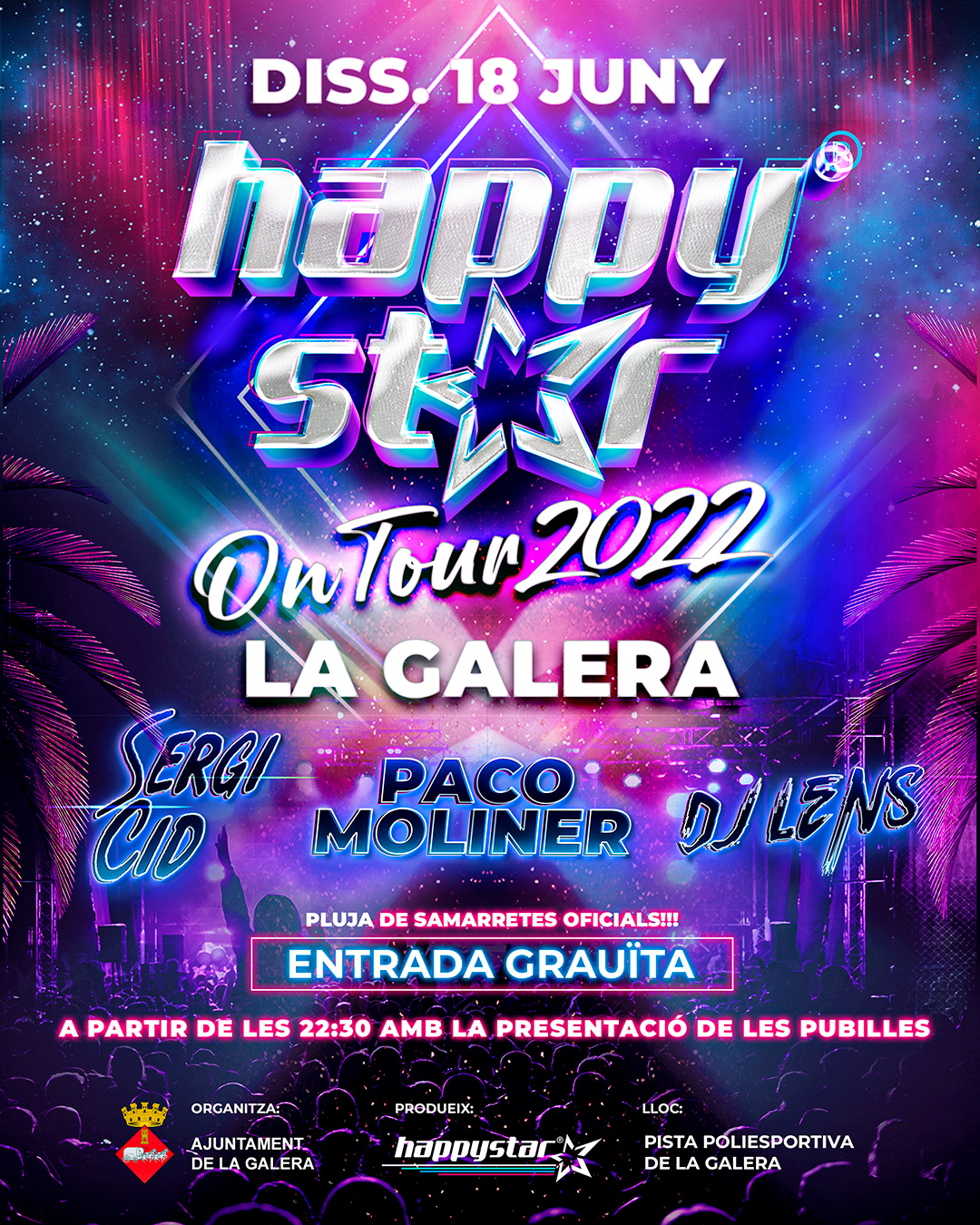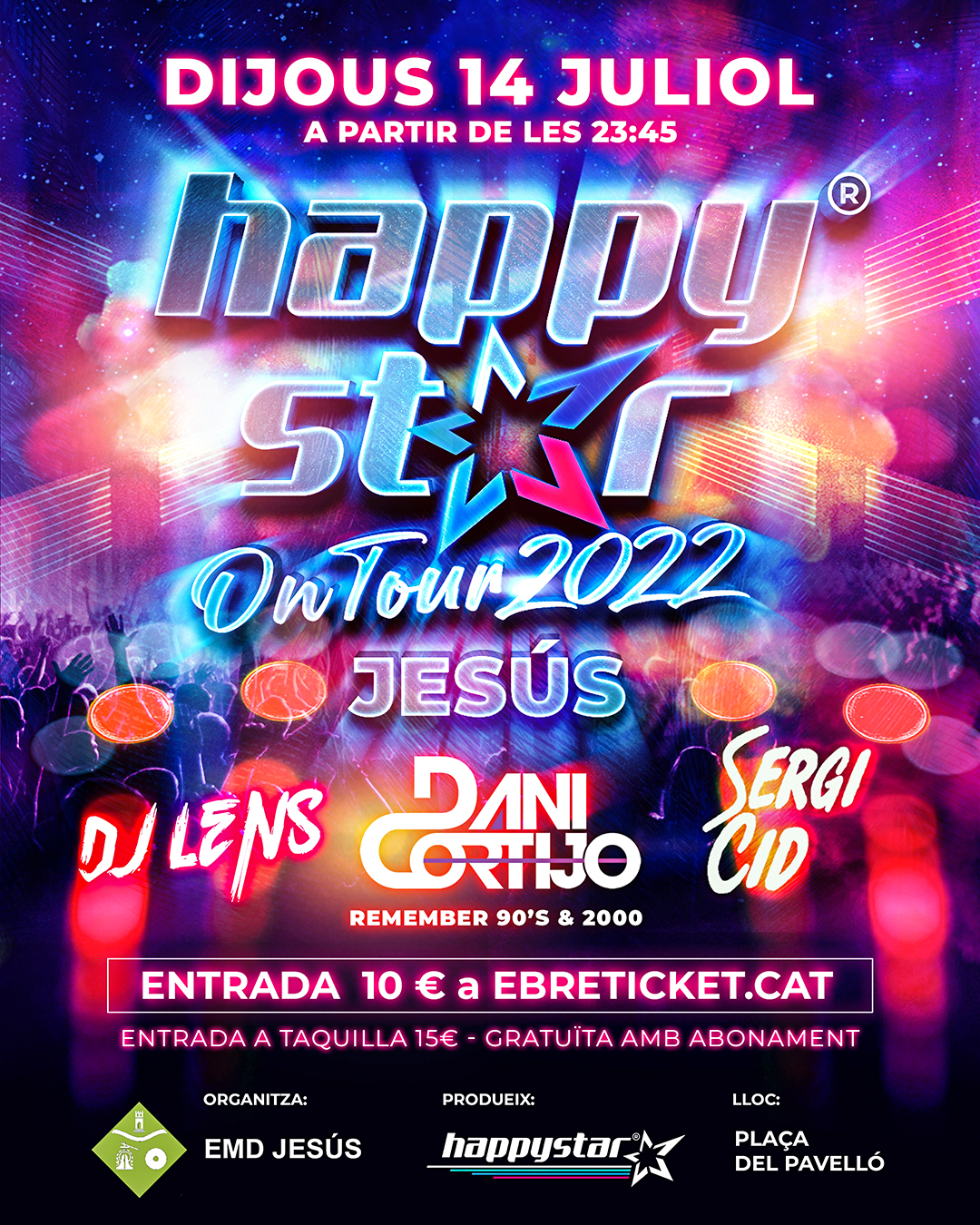 Plaça del Pavelló WIN Ctra. de Jesús a Roquetes, 23, JesúsOn ens havieu demanat un Happystar on Tour? On volieu la próxima festa de Happystar? On anireu la nit del dijous 14 de Juliol?? A Jesús!! Jesús!! Jesús!! El proper dijous 14 de Juliol, tot l'equip humà i professional d'aquest Tour 2022 ens desplaçarem a la plaça del Pavelló de Jesús!! 20000 Watts de llum […]