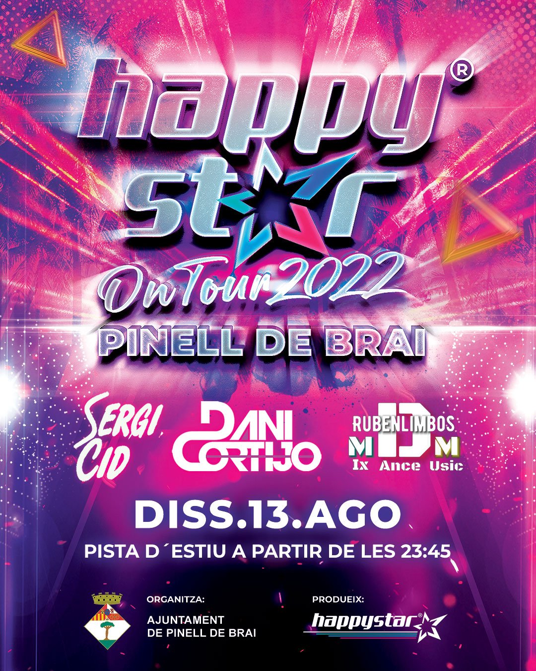 Pista d'Estiu El Pinell de BraiEl proper dissabte 13 d'Agost Happystar on Tour 2022 Pinell de Brai. A partir de les 23.45 i fins a la matinada tot l'equip humà i professional de Happystar farem parada a un dels municipis més emblemàtics de la Terra Alta. Una festa molt esperada on tindrem un cartell top per l'ocasió!! Sergi Cid serà […]